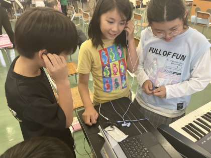 10月24日【4年生】音楽 研究授業 公開日 2024/10/24 更新日 2024/10/24 校長日記 マレットを変えるだけで曲の雰囲気が変わります!! タブレットで録音して確かめる子供たちも!! 工夫しながら学習に参加しています!! 素晴らしい!!