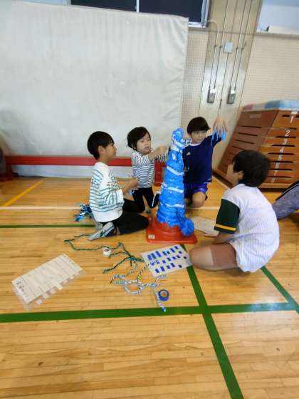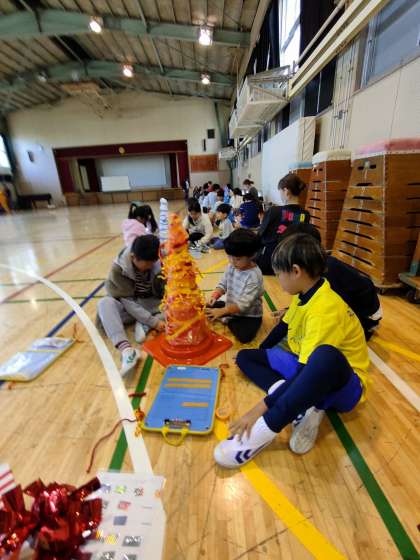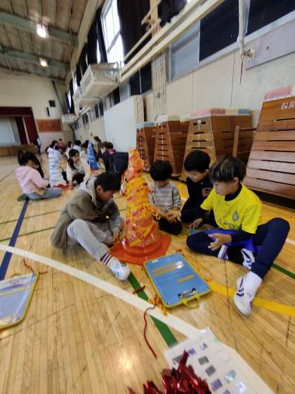 11月8日【3年生】展覧会 カラフルコーンづくり 公開日 2024/11/08 更新日 2024/11/08 校長日記 今日は1組、2組 合同で実施しました。 園児1人に3名ほどの小学生がグループになり、 モールをねじる準備を3年生ががんばってくれました