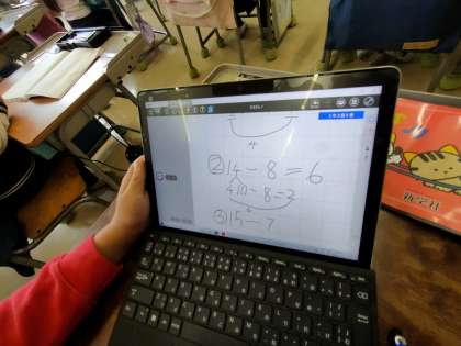 タブレットをノート代わりに 1年生も すらすら ノート(タブレット)に書き込んでいました!!