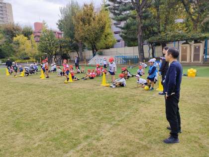 11月11日【4年生】 千駄ケ谷でデフリンピックを盛り上げよう!! 公開日 2024/11/11 更新日 2024/11/11 校長日記 デフのサッカー体験です。 やはり、意思疎通は、手話を使って行うようです。 簡単な 白 赤 黄色 の手話を習い、 それを活用したドリブルリレーを行いました