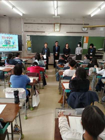「プレゼント」というアニメを観て、いじめについて考えました。みんな真剣に視聴し、登場人物の気持ちをしっかりと考え、積極的に発表をしていました。