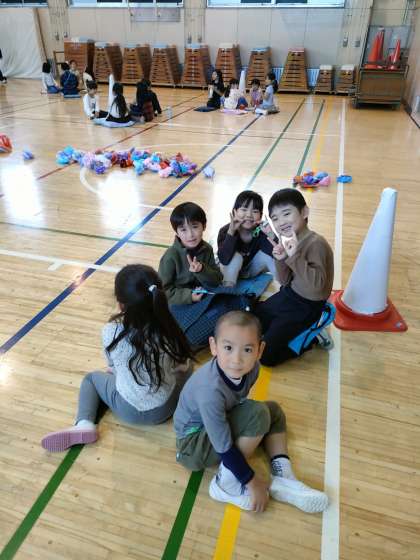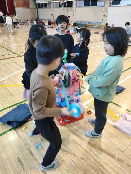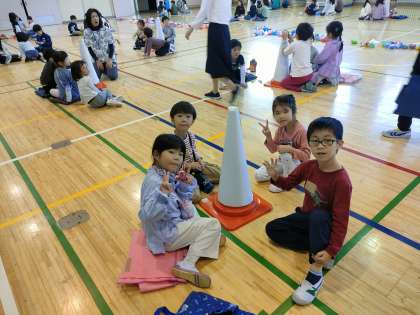 11月13日【1年生】展覧会 すみれ組(年長組)とのカラフルコーンづくり