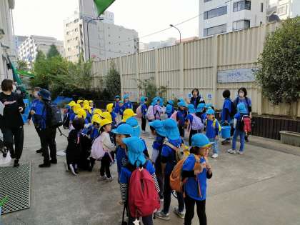 今日は 隣の なかよし園の遠足の引率です 井の頭公園に向けて出発します