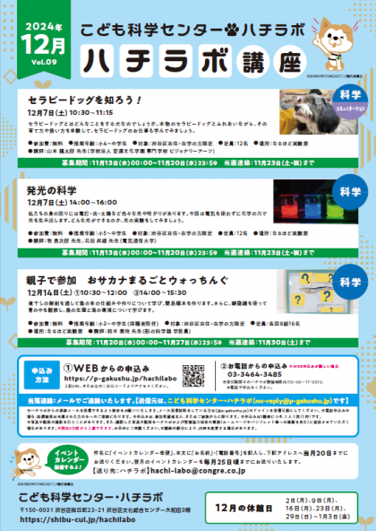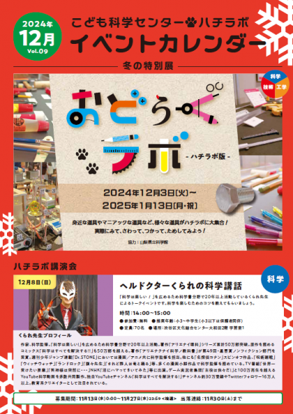 11月11日 こども科学センターハチラボのイベントのお知らせ