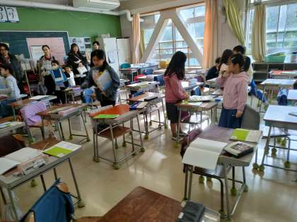 もう一方の3年生のクラスは、理科 屋上で光の実験!