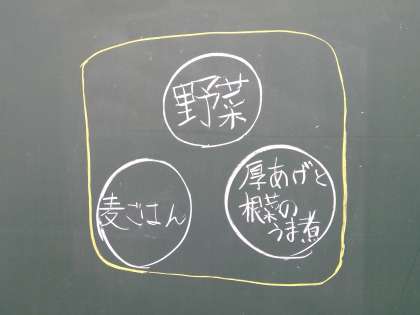 あるクラスの給食時間の黒板です。給食室からの手紙にも食器の位置は書いているのですが、A4サイズなので掲示しても後ろの席だと見えにくいのです。食器の位置だけ大きく黒板に書いてくれていました。日々のちょっとした給食指導が、こうやって児童に伝わっていると思うと嬉しくなりました。ありがとう!