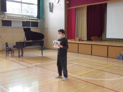 【校長日記】3月6日(土)演芸大会2日目2 公開日 2021/03/06 更新日 2021/03/06 校長日記 続いて、お笑い、英語スピーチ、ものまね。教室は笑い声や驚きにあふれていたことと思います。子供たちの頑張りに拍手です。集会委員も準備や進行など頑張りました。