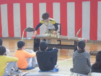 【校長日記】3月16日(火)琴演奏 公開日 2021/03/16 更新日 2021/03/16 校長日記 琴奏者 琴男kotomen大川義秋さんを招いて、5年生でワークショップをしました。演奏は見事、指導も優しく的確、しかも、かっこいい。ユーチューブ等でご覧ください。卒業式の練習が始まりました。こちらには超ウルトラサプライズがありました。6年生にきいてください。