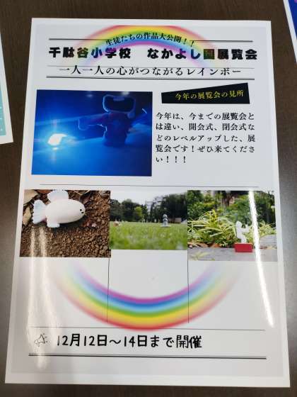 11月25日 展覧会 高学年作成ポスター 公開日 2024/11/25 更新日 2024/11/25 校長日記 今回の作品は、図工の先生と プロカメラマンの宇秋氏に指導していただきました。 プロカメラマンから写真のノウハウ ポスター作りのコツを教わり作成しました!!