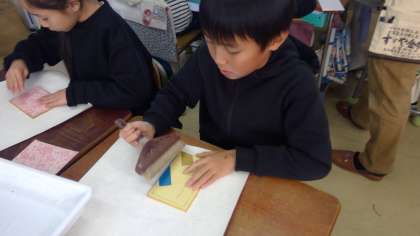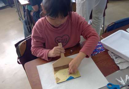 12月6日【4年生】伝統工芸体験 公開日 2024/12/06 更新日 2024/12/06 校長日記 東京表具経師内装文化協会の皆さんのご指導で 「からくり屏風」を作る体験をしました。 刷毛で周囲にのりをつけますが、 のりをたくさんつければ 良くくっつくという訳では ないそうです。