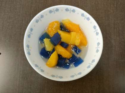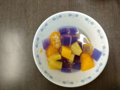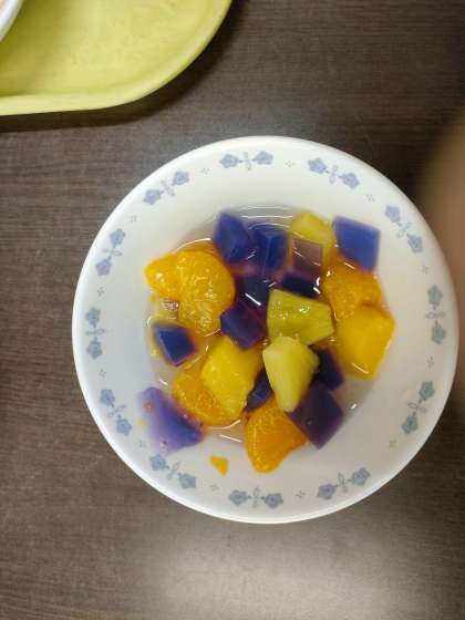 ゼリーが 青色から 紫色に 色が変わります。