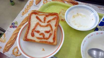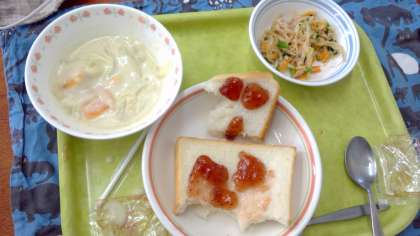 昨日は、お絵かきパンということで、食パンとジャムが提供され