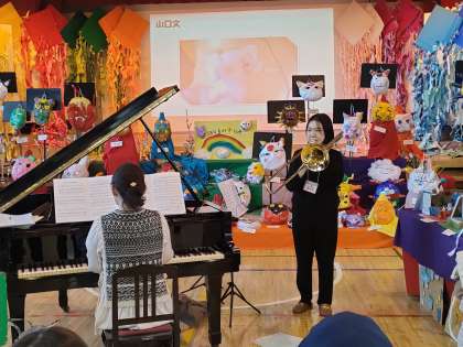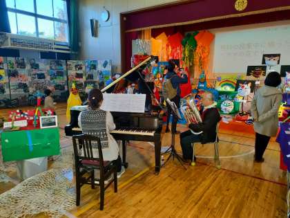 12月14日 生演奏実施中!!! 公開日 2024/12/14 更新日 2024/12/14 校長日記 本校の管楽器クラブの指導でお世話になっている 前田さん、土田さん、澤田さんの演奏!!! ご協力本当にありがとうございます!!