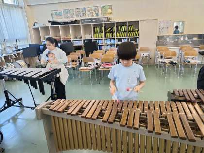鉄琴・木琴の練習を音楽室で