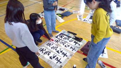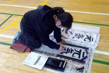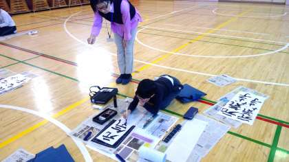 年が明けて、 新たな気持ちで筆を持ち、 書初めをしています。 4枚書いて 一番を選びます。