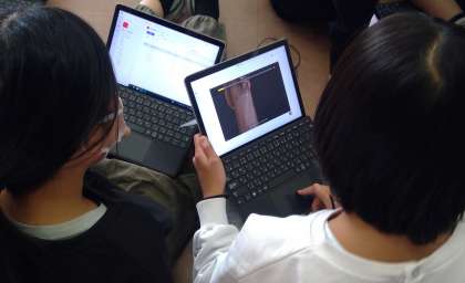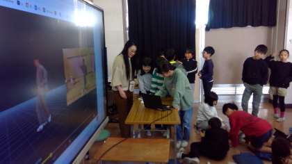 1月25日【シブヤ未来科】4年生 ボリュメトリックビデオの再生 公開日 2025/01/23 更新日 2025/01/23 校長日記 先日来ていただいた 日本舞踊の 藤間豊彦先生 の踊りを ニコンさんがボリュメトリックビデオで3Dにしてだだき、 持ってきてくださいました。 子供たちは、自分のタブレットで再生して 自分の好きな視点で見ることが できるようになりました。