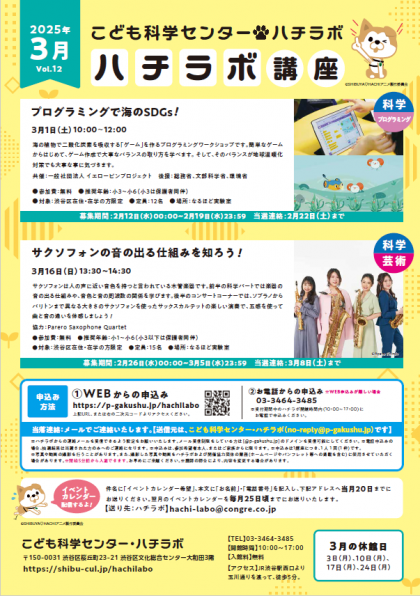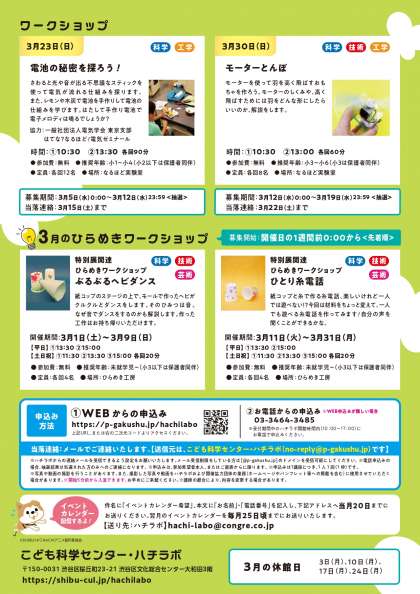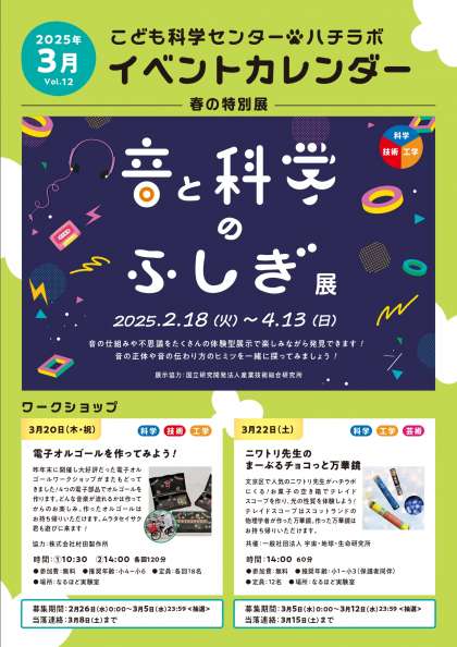 2月13日 こど科学センター ハチラボ 3月のお知らせ