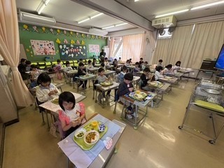 4月14日 初めての給食【1年生】 公開日 2025/04/15 更新日 2025/04/15 校長日記 1年生は、今日初めての給食でした。片付けの仕方なども教わり、おいしくいただきました。初めての給食のメニューはカレーライスでした。