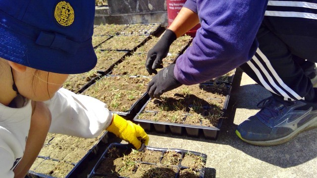 4月30日【2年生】芝苗作り⑦ 公開日 2025/04/30 更新日 2025/04/30 校長日記 3時間目の2年1組さんも、順調に芝苗を作りました。完成した芝苗は、水やりをするので、水道の近くにどんどん運びます。ずらっと並ぶと圧巻です!!