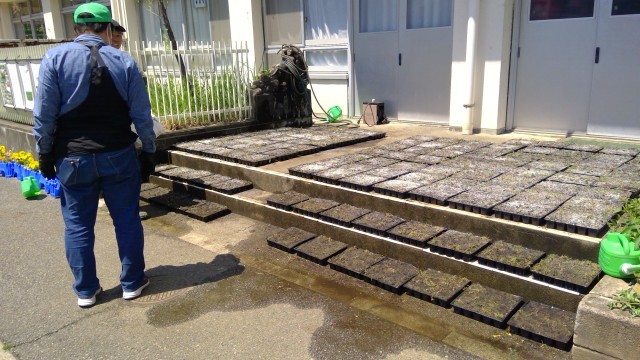 4月30日【2年生】芝苗作り⑨ 公開日 2025/04/30 更新日 2025/04/30 校長日記 最後に、今後のお話を聞きました。2年生が作った芝苗は、明日からしっかり水やりをし育てていきます。そして、6月7日(土)!!こんどは、この芝苗を校庭の芝の剥げている部分に植えていきます。これが芝の補植です。今年は、2年生が芝苗作り~補植作業まで挑戦します。シバッカリィーズの大林さんをはじめ、地域の皆様、保護者の皆様、暑い一日大変にお世話になりました。ありがとうございました。