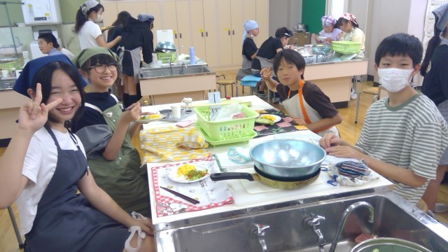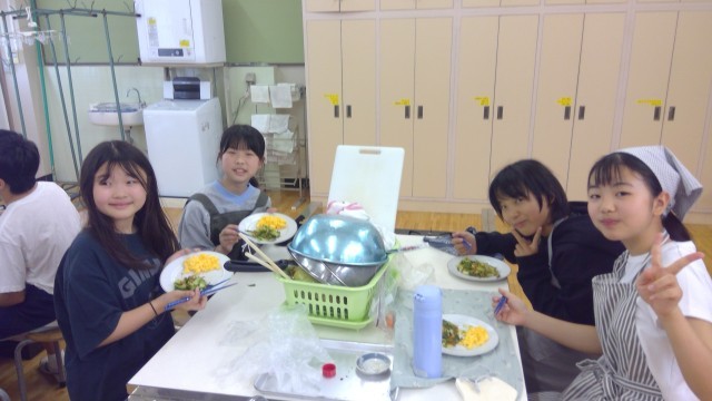 5月22日【6年生】調理実習⑤ 公開日 2025/05/22 更新日 2025/05/22 校長日記 今回の単元は「できることを増やしてクッキング」こんろの使い方も学習しました。元栓の開閉、点火後の火加減、周りの片付けなど、大切なことを身に付けました。休みの日、是非お家でも挑戦できるといいですね。