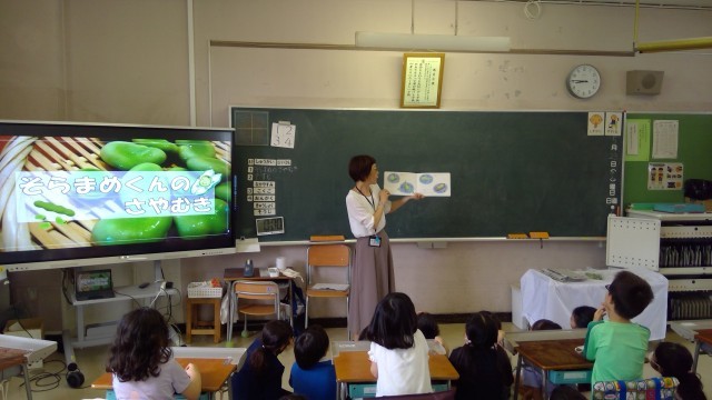 5月23日【1年生】そらまめのさやむき(1組)① 公開日 2025/05/23 更新日 2025/05/23 校長日記 今日の学級活動は、「そら豆のさやむき体験」です。「そらまめくんのベッド」の読み聞かせとそら豆クイズで、そら豆について学びました。