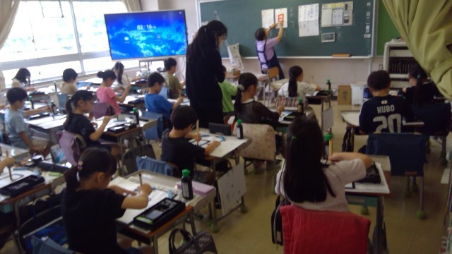 6月12日【授業の様子】⑤ 公開日 2025/06/12 更新日 2025/06/12 校長日記 3年生、書写の授業に取り組んでいました。今日は「日」です。ポイントは「おれ」!!先生のアドバイスをよく聞いて、一生懸命に書く姿は、とてもかっこいいです。