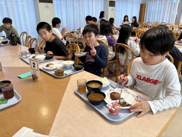 6月18日【4年生】御殿場宿泊体験7 公開日 2025/06/18 更新日 2025/06/18 校長日記 夕飯はバイキング、残さない様にして自分の好きなものを好きなだけ食べられるとあって、子どもたちの食欲は旺盛でした。「ウチの10倍食べた。」「4杯ご飯食べた」「ここのご飯、最高!」との声が聞かれました。