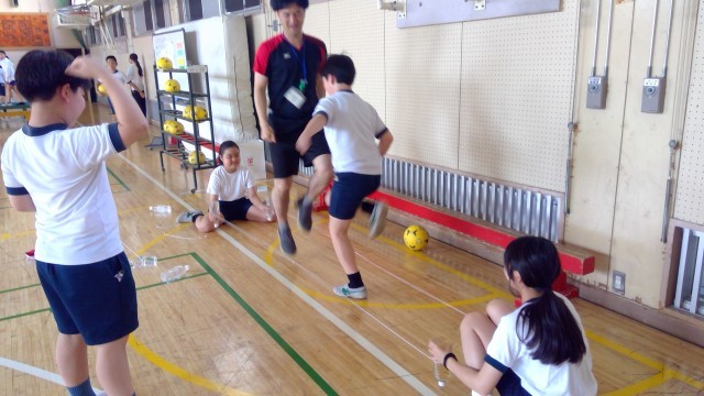 6月19日【6年生】体育の授業③ 公開日 2025/06/19 更新日 2025/06/19 校長日記 次は、バンブーステップ。中・外・外・中・外・外のリズムで跳ぶんです。初めはうまくいかなくても、だんだんリズミカルに跳べるようになりました!!