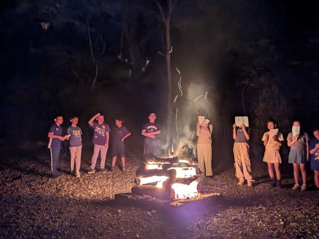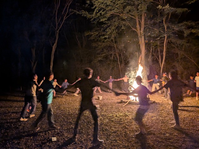 美味しいバーベキューの夕食の後、待ちに待ったキャンプファイヤーです。