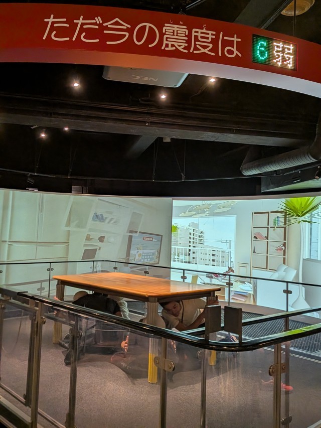 地震体験では、震度6弱の大きさの揺れを体験しました。