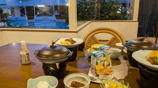 プールのあとは、夕食をもりもり食べました。