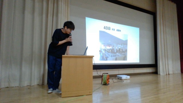 次に、鳩森小学校の代表としてフィンランドに行った6年生児童が、フィンランド派遣の報告をしました。