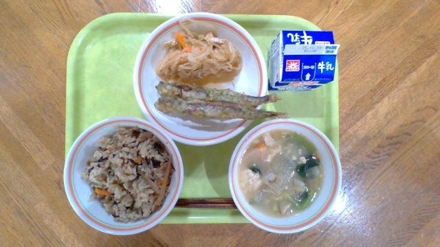 給食だより 10月2日(木) 公開日 2025/10/03 更新日 2025/10/03 今日の給食 今日の献立・ひじきごはん・牛乳・ししゃもの磯辺揚げ・えのき入りおひたし・かみなり汁★今日は、「かみなり汁の名前の由来」について、食育メモでクラスにお知らせをしました。