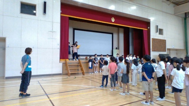 10/6 図書員会の発表を体育館で行いました。