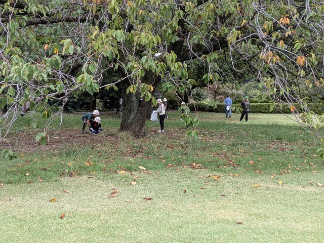 新宿御苑の清掃担当の方たち、植物の手入れをしている方たちとお仕事を手伝いました。
