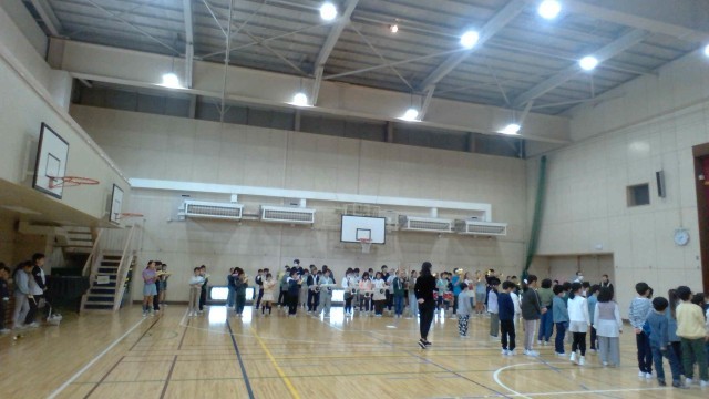 体育館で、1~3年生も参加し、たくさんの保護者の方にも見ていただきました。