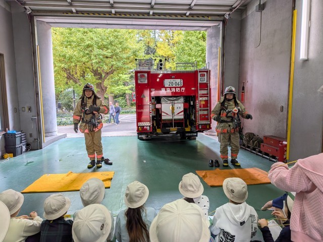 消防車の秘密や作りを色々教えてもらいました。ちょうど救急車も帰ってきたところで、救急車の中もよく見ました。その他、消防署の中の食堂や寝るところ、シャワー、色々な設備を見せてもらい、大変勉強になりました。