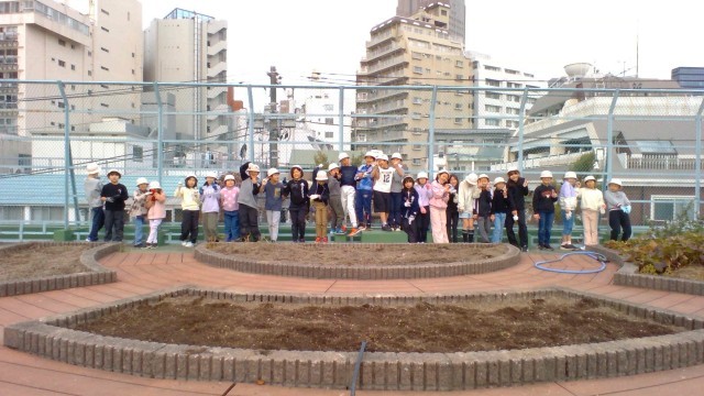今日は、PTAの活動に参加させていただき、屋上の花壇に球根を植えました!
