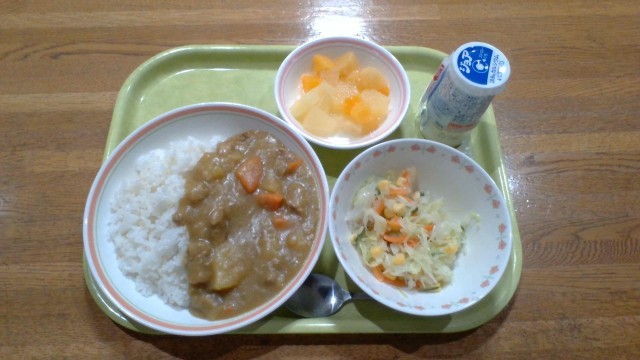 給食だより 12月4日(木) 公開日 2025/12/05 更新日 2025/12/05 今日の給食 今日の献立・ポークカレー・発酵乳(プレーン)・コールスローサラダ・洋梨入りミックスフルーツ★今日は、追熟され洋梨を使った「ミックスフルーツ」ついて、食育メモでクラスにお知らせをしました。