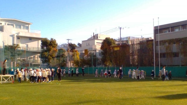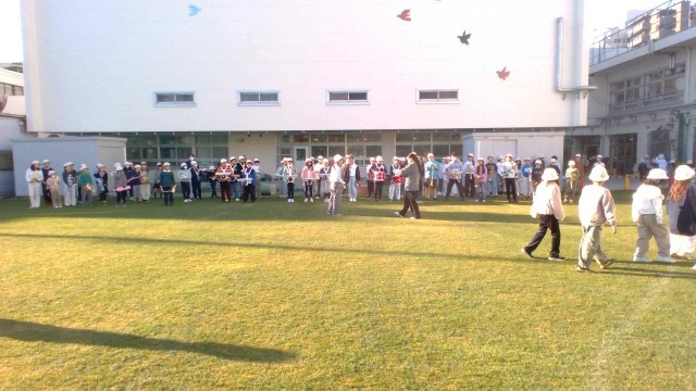 展覧会準備で体育館が使えないため、久しぶりの校庭での全校朝会でした。