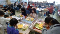 お昼ご飯は代々木公園で食べみんな笑顔でいっぱいでした。給食とは違い、お弁当を味わっていました。