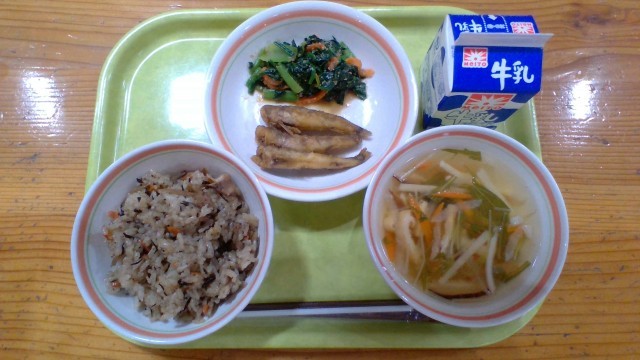 給食だより 1月14日(水) 公開日 2026/01/16 更新日 2026/01/16 今日の給食 今日の献立・ひじきごはん・牛乳・メヒカリのから揚げ(カレー風味)・ほうれん草のごま和え・沢煮椀★今日は、沢煮椀について、食育メモでクラスにお知らせをしました。