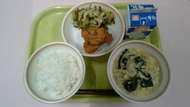 給食だより 1月16日(金) 公開日 2026/01/16 更新日 2026/01/16 今日の給食 今日の献立 ~百人一首献立~・ごはん・牛乳・鶏肉の竜田揚げ・茎わかめサラダ・夜半の月汁★今日は、かるた大会にちなんだ献立を取り入れました。クラスに配る食育メモには、献立の内容についてお知らせをしました。