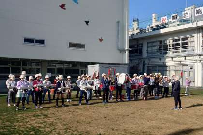今日の鼓笛隊の演奏は、4・5年生による校歌でした。移杖式の練習の成果が出ていました。3年生も来週いよいよデビューか!?といったところです。鍵盤ハーモニカが入ると、音に厚みが出るので楽しみです。