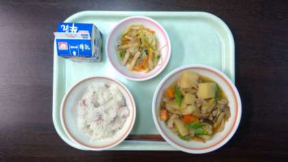 給食だより 4月9日(火) 公開日 2024/04/09 更新日 2024/04/09 今日の給食 ・さくらおこわ ・新じゃがいもの煮つけ ・ちぐさあえ ・牛乳 おこわとは、もち米を炊いたり蒸したりする米飯のことです。その歴史は古く、弥生時代にはうるち米を蒸した料理が食べられていたとされています。きょうの給食では、桜の塩漬けを使い春らしい「さくらおこわ」を取り入れました。桜の香りを楽しみながら食べてください。