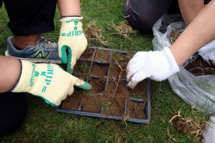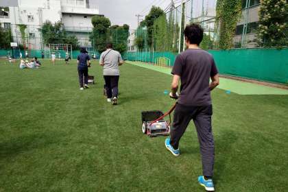 芝生のメンテナンスをしました。その2 公開日 2024/06/27 更新日 2024/06/27 校長室から 写真の続きです。上から、芝の苗づくり、芝刈り、芝刈り機の試運転です。 芝を刈ると、校庭から草のよい香りがしてきます。 子どもたちが気持ちよく芝生の上で遊べるのも、鳩森グリーンコミュニティの皆さんのおかげです!この場を借りて、お礼申し上げます!