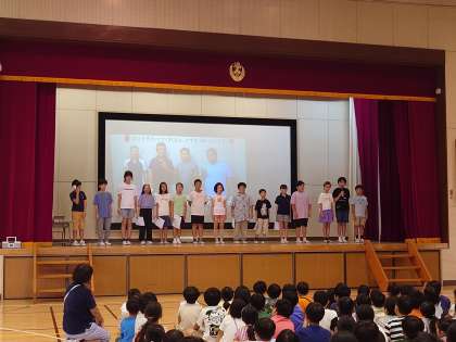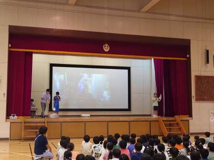 保健給食委員会が行っている常時活動(水質検査や石けんの点検・交換)や、季節ごとに行っている健康増進のためのキャンペーン活動などの紹介の後に、給食室の一日が紹介されました。
