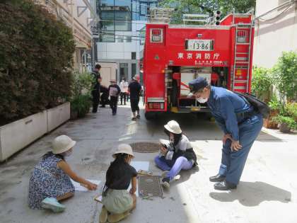 1・2年生 はたらく消防の写生会 公開日 2021/05/10 更新日 2021/05/10 お知らせ 3・4校時に「はたらく消防の写生会」を行いました。渋谷消防署原宿出張所に協力の下、敷地内に消防車を停めていただきました。 子供たちは、消防車を間近で見ることができ大喜び。じっくり観察するように眺めていました。タブレット端末を使って、自分が気に入った角度から写真を撮影し、その写真も参考にしながら絵を描きました。 絵を描くことはもちろん、消防署のお仕事を知る機会にもなりました。
