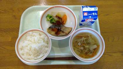 きょうは、ワンダフル給食です。沢煮椀の「沢」は、「沢山」という意味と、「あっさりしたうす味」という意味があります。 材料を細く切り、だし汁で煮て、うす味に仕上げた汁物を「沢煮椀」といいます。沢煮椀には、豚肉と、ごぼう、干ししいたけ、にんじん、えのきたけ、たけのこ、ねぎの食材を使っています。かつお節と昆布の合わせだしと、材料のうま味がよく出ています。